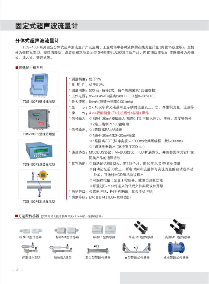 超聲波流量計(jì) 一、概 述 AK-TDS-100F型固定式超聲波流量計(jì)利用了低電壓、多脈沖時(shí)差原理,采用高精度和超穩(wěn)定的雙平衡信號(hào)差分發(fā)射、差分接收數(shù)字檢測(cè)技術(shù)來(lái)測(cè)量順流和逆流方向的聲波傳輸時(shí)