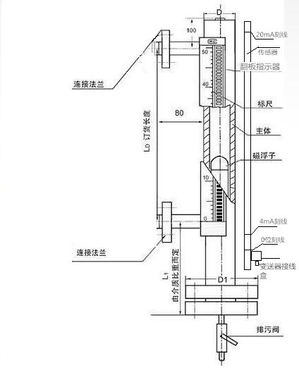 UDZ-2型電遠傳磁浮子液位計主要由主體、磁浮子、傳感器、變送器和顯示儀五部分組成。其工作原理是以主體內的磁浮子隨液位的升降而同時吸合傳感器內相應位置上的干簧管,從而使傳感器內的總電阻(或電壓)發生相應的變化,然后通過變送器將電阻 (或電壓)的轉變成4-20mA.DC的標準電流輸出,再由我廠專門配套的數顯液位控制儀,顯示液位和設定上、下限報警,實現液位的位式控制或調節。此外亦可與我廠的光柱數顯儀配套,顯示更為直觀。或者與其它可以接受4-20mA.DC信號輸入的任何顯示儀或調節器相配套,實現對液位的遠距離顯示、位式控制、斷續或連續的PID調節。